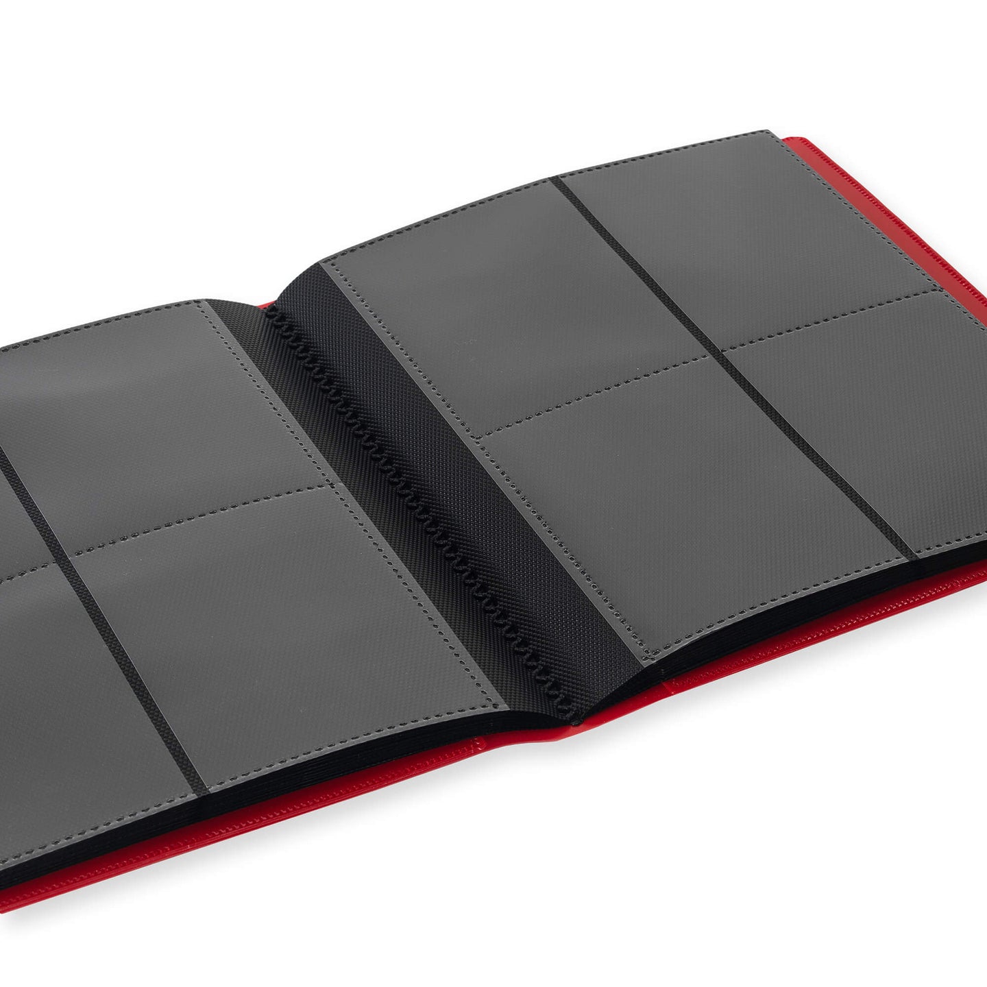 Side loading pockets are designed to keep your cards securely in place. High Quality elastic band fastener keeps the Vault X Binder closed. No more card spills.