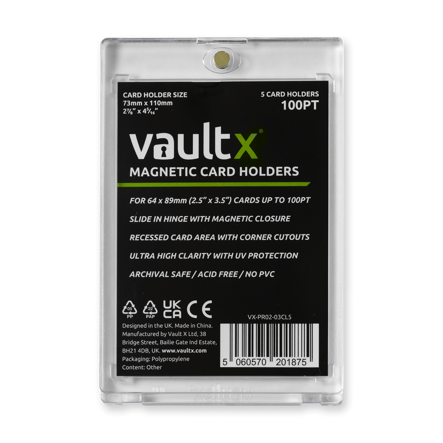 UV SAFE - Vault X Mag Holders are made from non-PVC material which includes a UV barrier to reduce light exposure and prevent card fading.