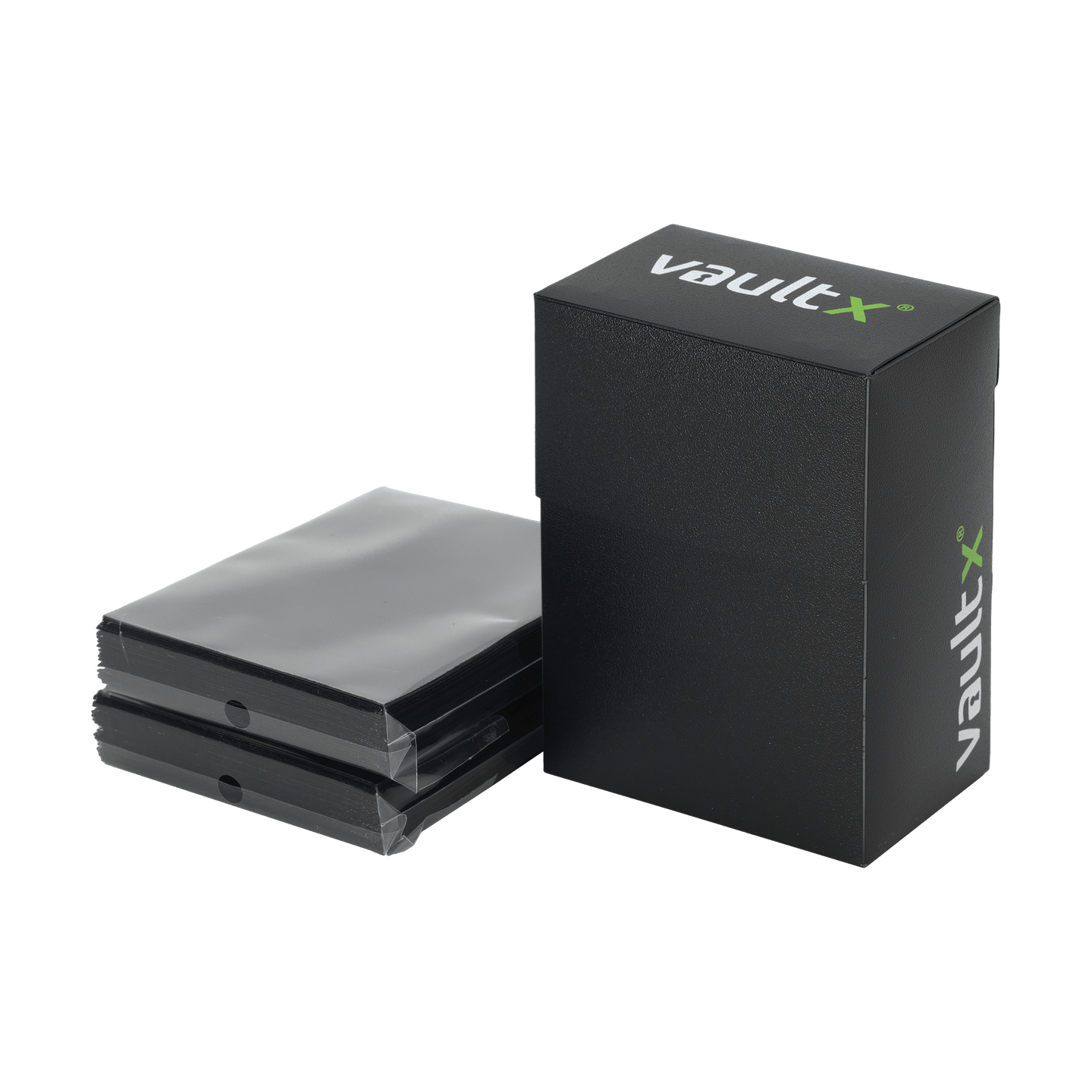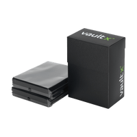 Small card deck box with 100 standard size black deck protector sleeves to fit a variety of standard sized cards. Made from archival-safe, acid-free non-PVC material the Vault X is the perfect way to store your cards. 12 Month Warranty from date of purchase.